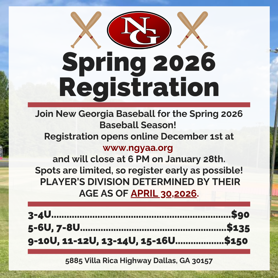 Registration for the SPRING 2026 season will open on Monday, December 1st at 7:00 AM and will close on January 28th, unless an age group reaches capacity beforehand.